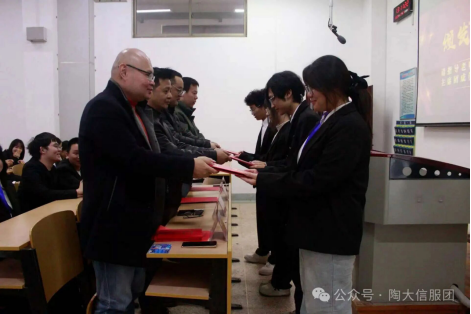 2025年12月1日,景德镇陶瓷大学信服团换届大会在研究生大楼115教室举行。现代教育技术中心副主任哈乐老师、网络运行管理科科长方大平老师以及指导老师罗一鸣、张力,与信服团全体新老成员共同出席了本次大会。